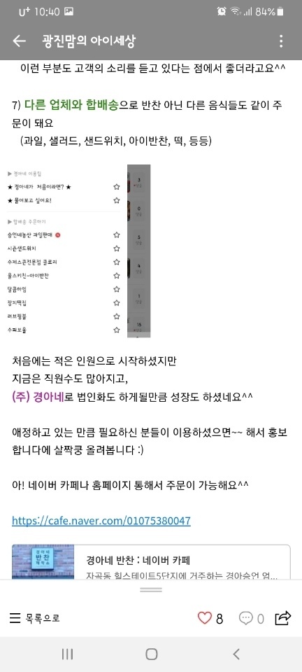 안녕하세요^^ 무더운 더위도 슬슬 가나봐요 요즘 새벽에는 얇게입으면 추울때도 있던데 다들 이럴때일수록 감기와 건강 유의하세요! 다름이 아니라 오랜만에 다시 통큰 이벤트를 하려고해요 앞으로 1달 뒤인 9월이면 추석인데 추석맞이 이벤트?라고 생각하시면 될것 같아요~^^ 고객님들이 많이 늘수록, 주문을 많이해주실수록! 저희도 좋지만, 그만큼 보다 재료를 더 저렴하게 (품질은 당연히 최상!) 구하여 고객분들께 도로 돌려드릴수가 있기도 합니다^^ 그러면 바로 이벤트 소개 들어갑니다~★ 대상 : 1. 최근6개월간 주문횟수3회이상 꾸준히 이용중이신 고객님 2. 1번의 자격이 안되시는 분들 / 신규회원님들은 링크 클릭! ☞ https://cafe.naver.com/01075380047/11635 기간 : 21.08.20 ~ 21.09.10 내용 : 1. 맘까페 추천이벤트 각 지역 맘까페에 추천글을 올려주세요~ 요즘 맘까페 규정이 까다로워서 쉽지않은것 같아요 ㅎ 삭제되지 않도록 규정을 잘 숙지하셔서 써주심 됩니다! 각지역맘까페 (맘스홀릭같은 초대형 까페는 안됩니다 글이 워낙 많이 올라와서 효과가 없어용 ㅎ) 글 1개 : 70000 점 적립금 1인1회가능 지난번에 같은 이벤트일때 저희 고객님께서 올려주신 내용인데 너무 감사하면서도 글솜씨가 너무 좋으셔서...! 예시로 올려봐요^^ 이렇게 자세히 올려주시면 감사하지만 꼭 그러지 않으셔도 됩니다! ![]() ![]() ![]() ![]() ![]() 2. 해시태그 이벤트 인스타.블로그.페북등등 각종 sns에 #경아네 또는 #경아네반찬으로 사진 및 글 작성 해주세요 ^^ (블로그의 경우 장기간 게시글이 없거나, 이벤트용으로 단발성 글만 올린건 죄송하지만 해당이 안돼요~! ) 글1개 : 5000 점 적립금, 1인5회 가능 3. 댓글이벤트 타카페, 지식인 등 반찬가게 문의글등에 경아네 추천댓글 써주셔요 ^^ 댓1개 : 5000 점 적립금, 1인5회 가능 4. 친구추천이벤트 기존고객님이 친구를 소개하셔서 친구분이 첫 주문시, 양쪽 모두에게 각 10000 점 적립 ->친구분 주문시 반드시 소개자분 성함이나 닉네임을 전달해주세요 ^^ 이벤트 참여 후 적립요청은 010 8082 0047로 문의주세요~ ^^ 감사합니다!!! |