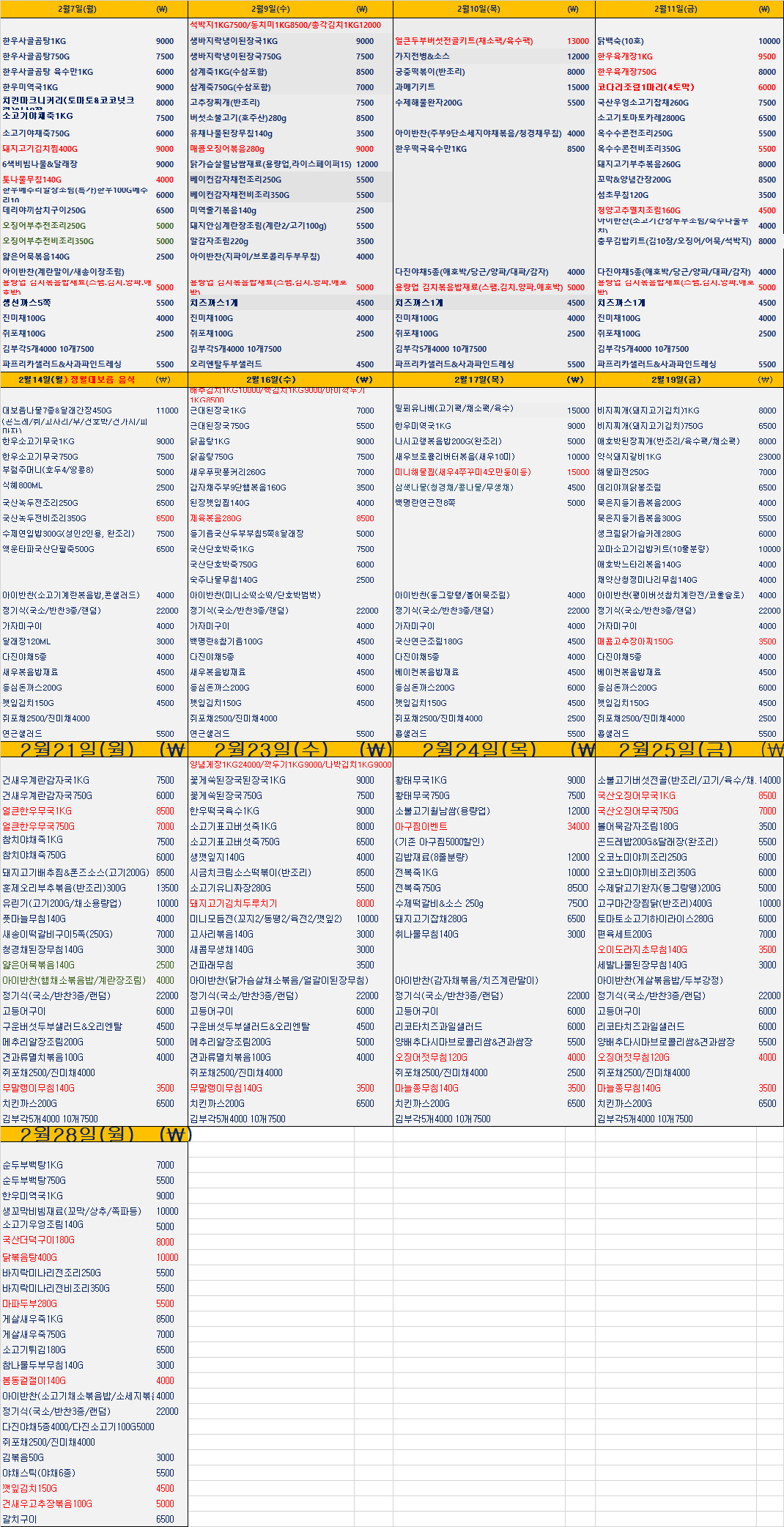 2월 식단표가 나왔습니다.