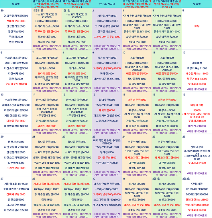 | 제목 | 1월 식단이 나왔어요 정기식 주문해주세요^^ |