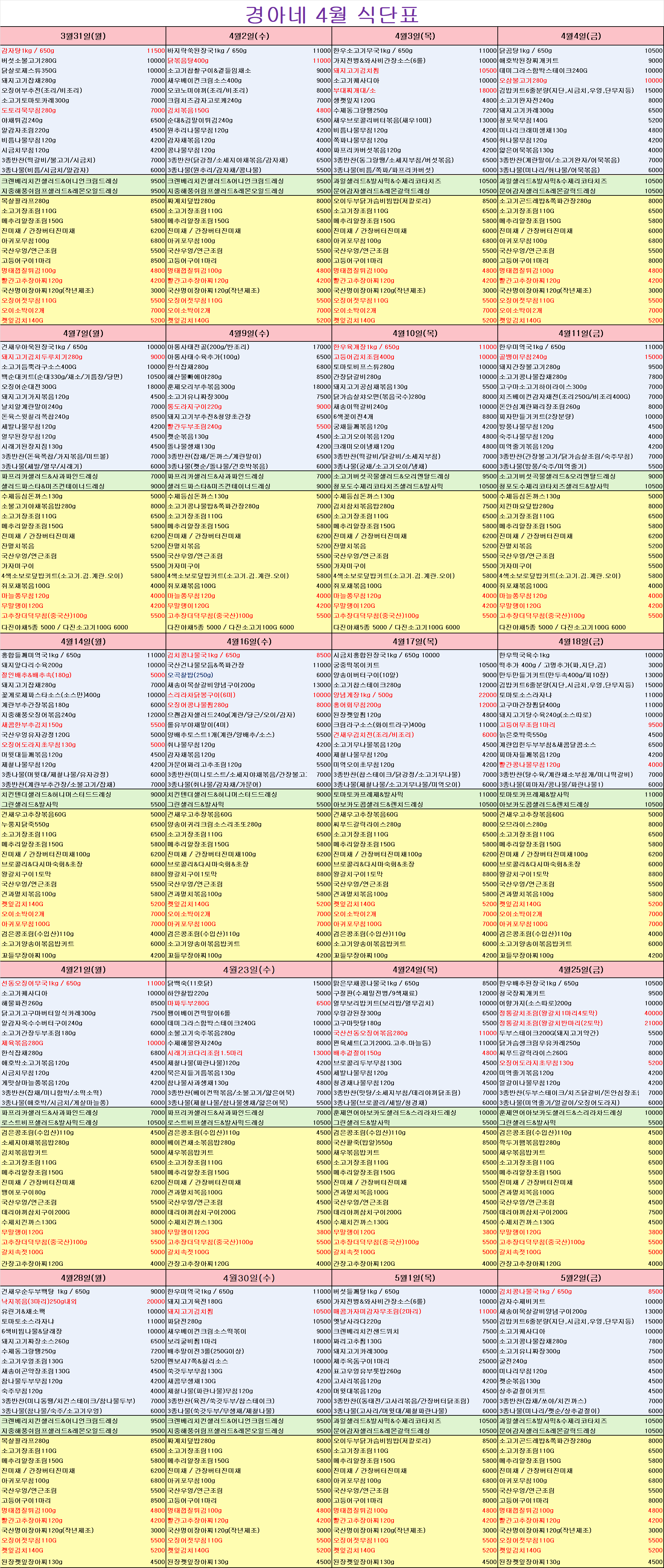 4월 식단표