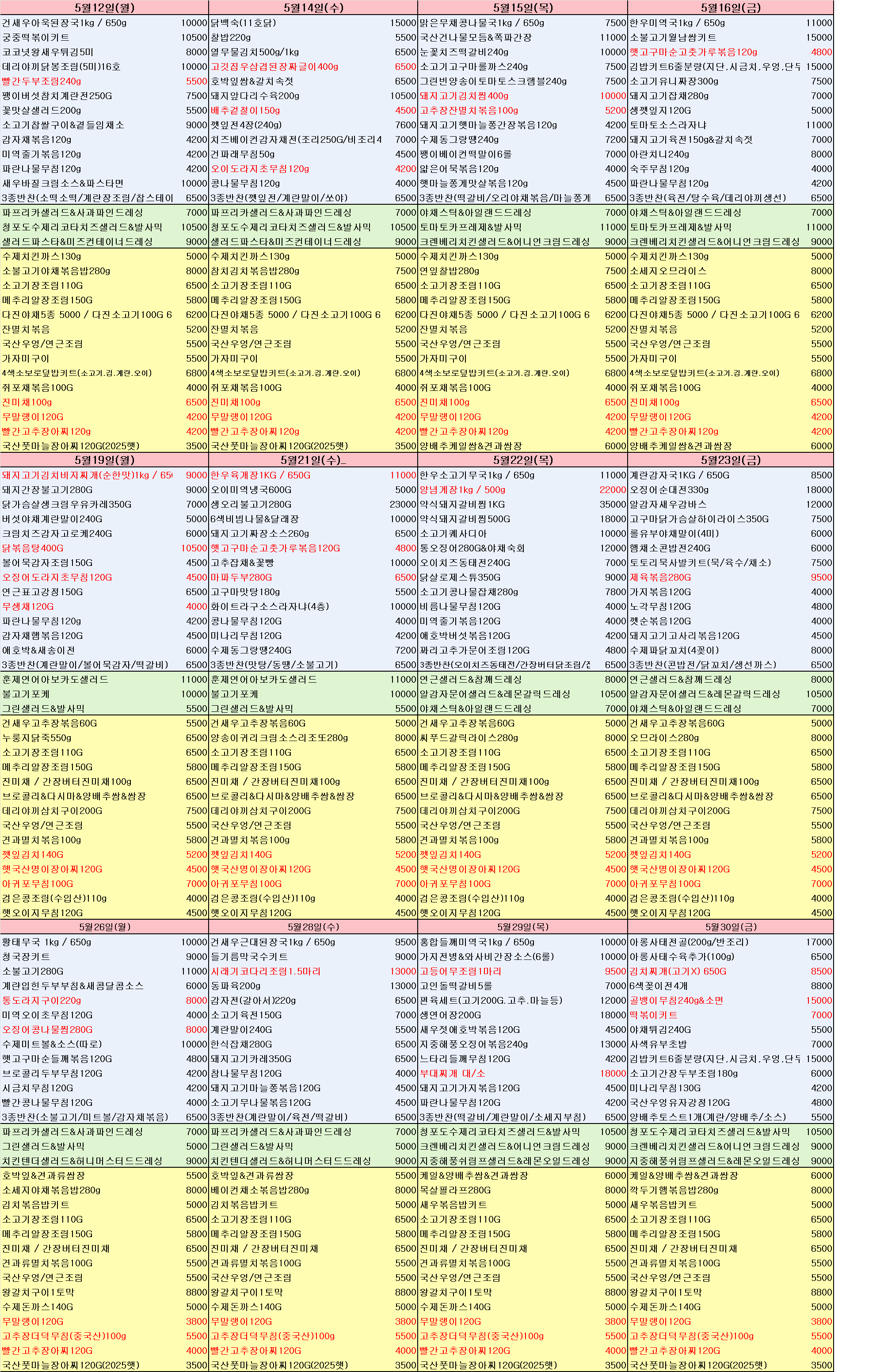 5월 식단표