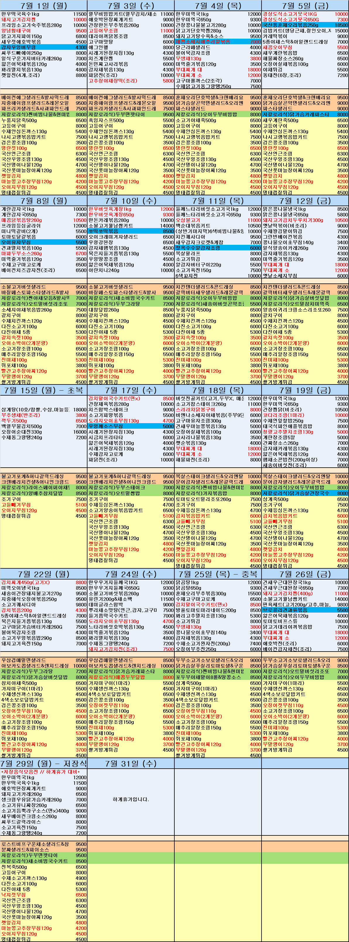 | 제목 | 24년 7월 식단표 |